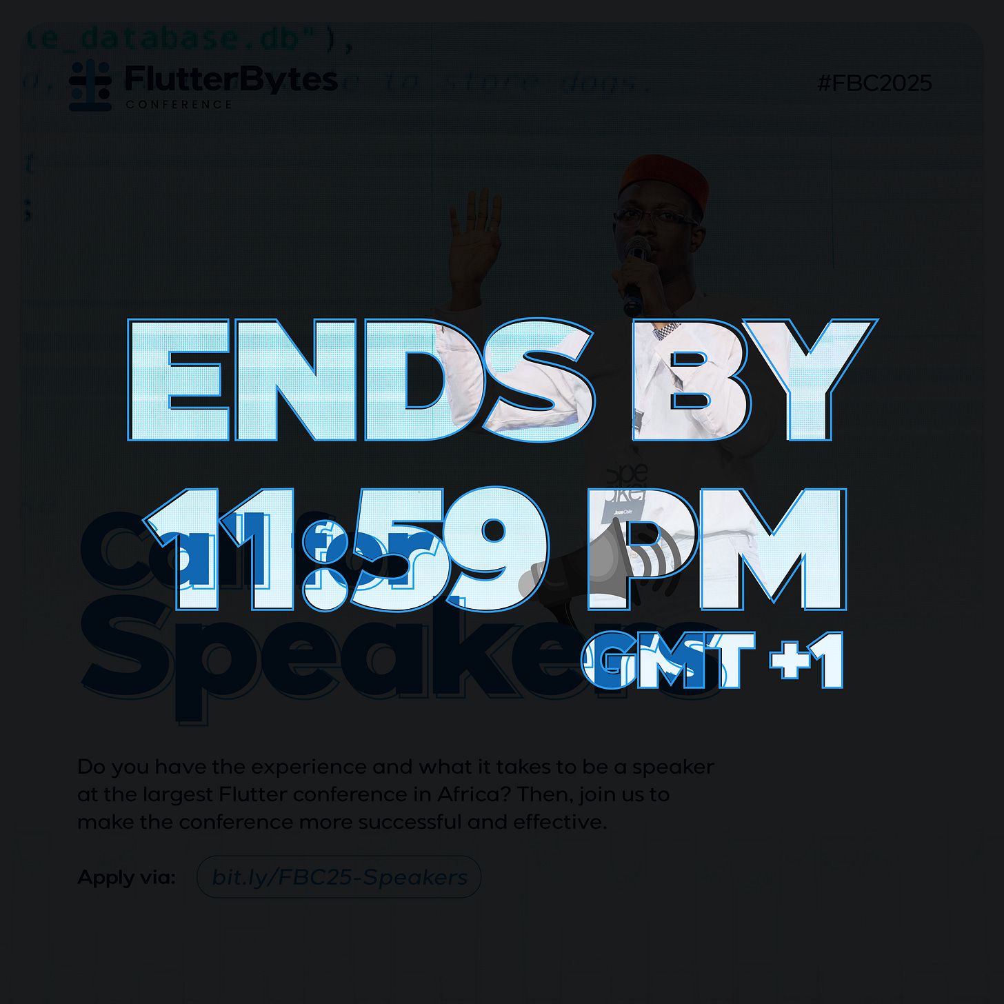 This is the final call to apply as a speaker for FlutterBytes Conference 2025. Submissions close tonight!